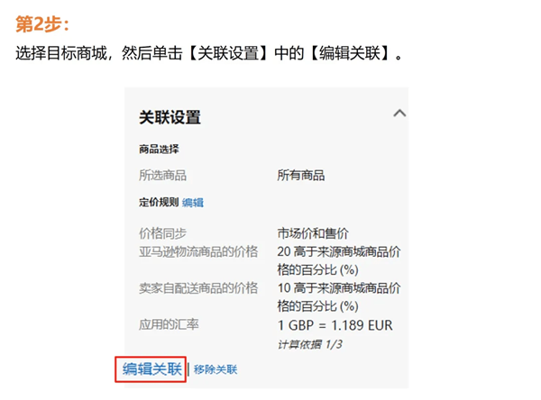 您可以通過:在【建立國際商品信息】頁面右側的關聯設置 > 點擊定價規則的【編輯】 > 在下拉菜單中選擇“與來源站點相同,針對稅費和費用進行調整“來啟用這項自動定價規則。