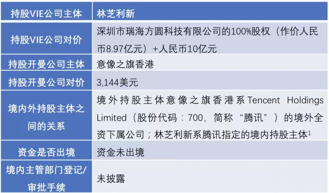 注:騰訊在公開文件中均未披露意像之旗香港與林芝利新之間的關系,亦未披露林芝利新是否為騰訊的VIE公司或其與騰訊的關系。但基于騰訊投資貓眼娛樂的具體信息,林芝利新穿透后的股東均為騰訊員工,且林芝利新為騰訊指定的境內持股主體,我們理解林芝利新與騰訊的境外下屬公司意像之旗香港之間可能存在同一利益關系。