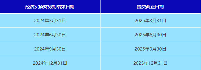 而經(jīng)濟(jì)實(shí)質(zhì)申報(bào)(ES Return)的核心截止日期為財(cái)務(wù)期結(jié)束后12個(gè)月內(nèi)。